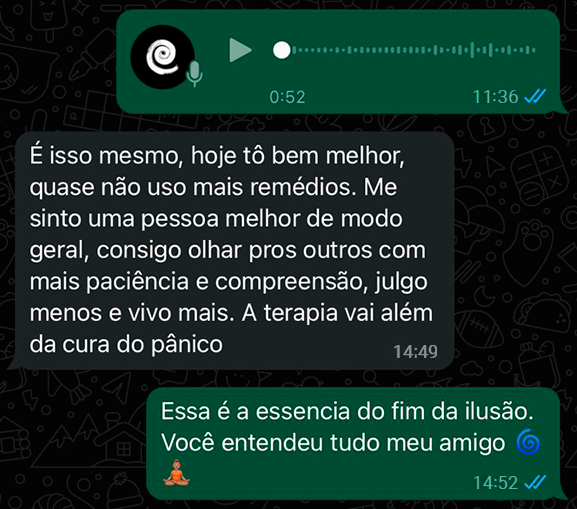 🎁 Conteúdo Complementar → áudios extras sobre temas que orbitam o universo do autoconhecimento, espiritualidade e os transtornos emocionais que tratamos.